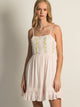 The Lilly Dress from Patrons of Peace is a cute and flirty dress that is perfect for the summer months. Its floral designs and embroidery give this dress an extra dose of personality.